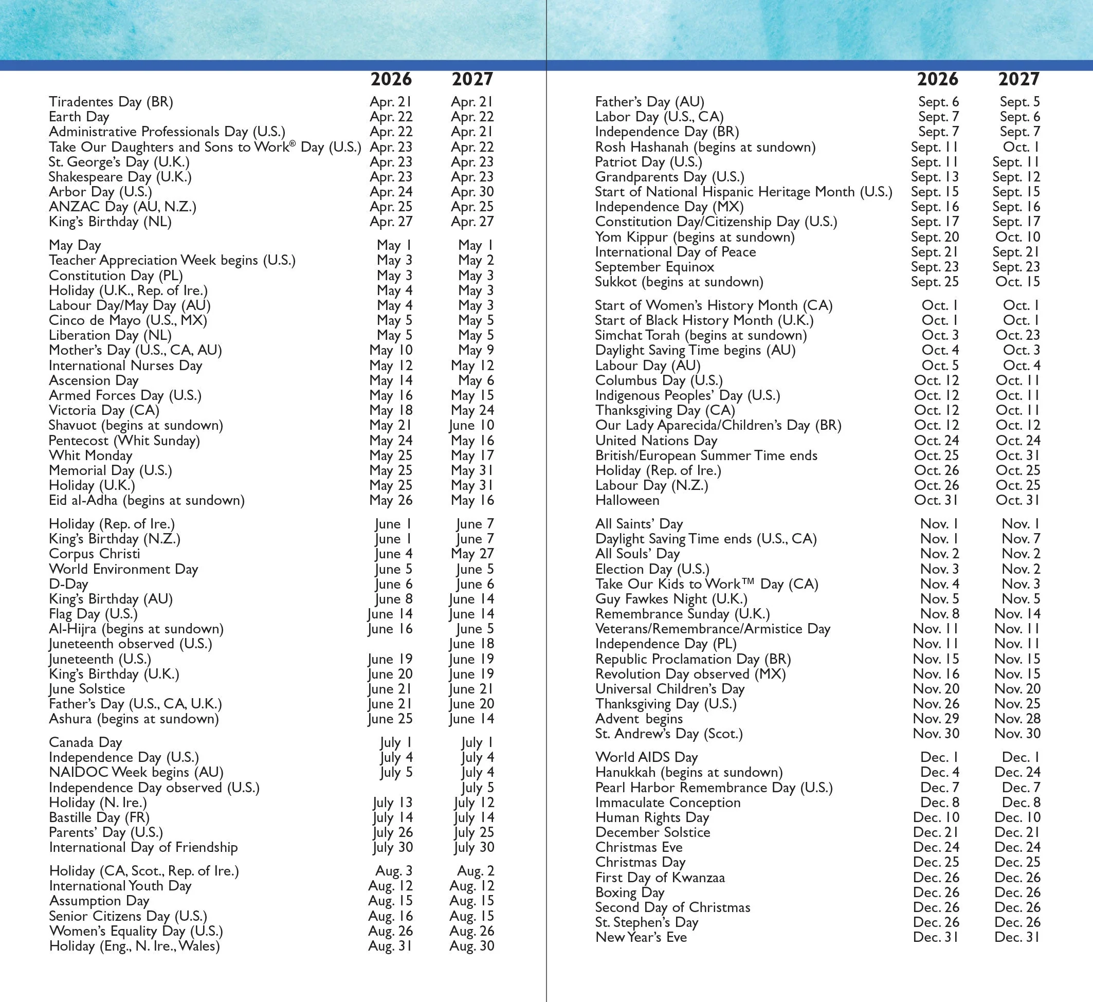 - Includes a page to note birthdays, anniversaries, and other dates to remember.