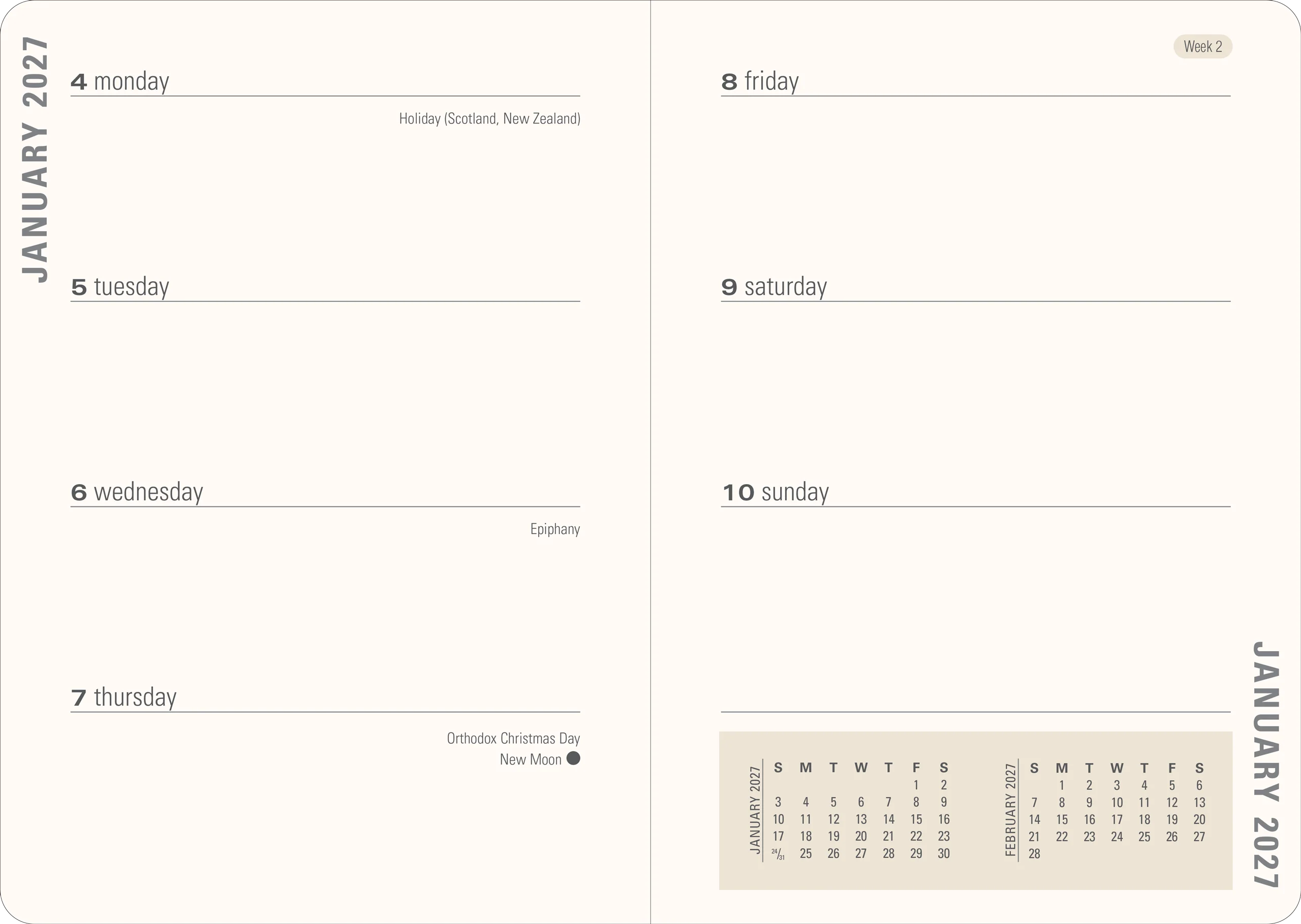 - Weekly pages provide equal space for all 7 days, including Saturday and Sunday.