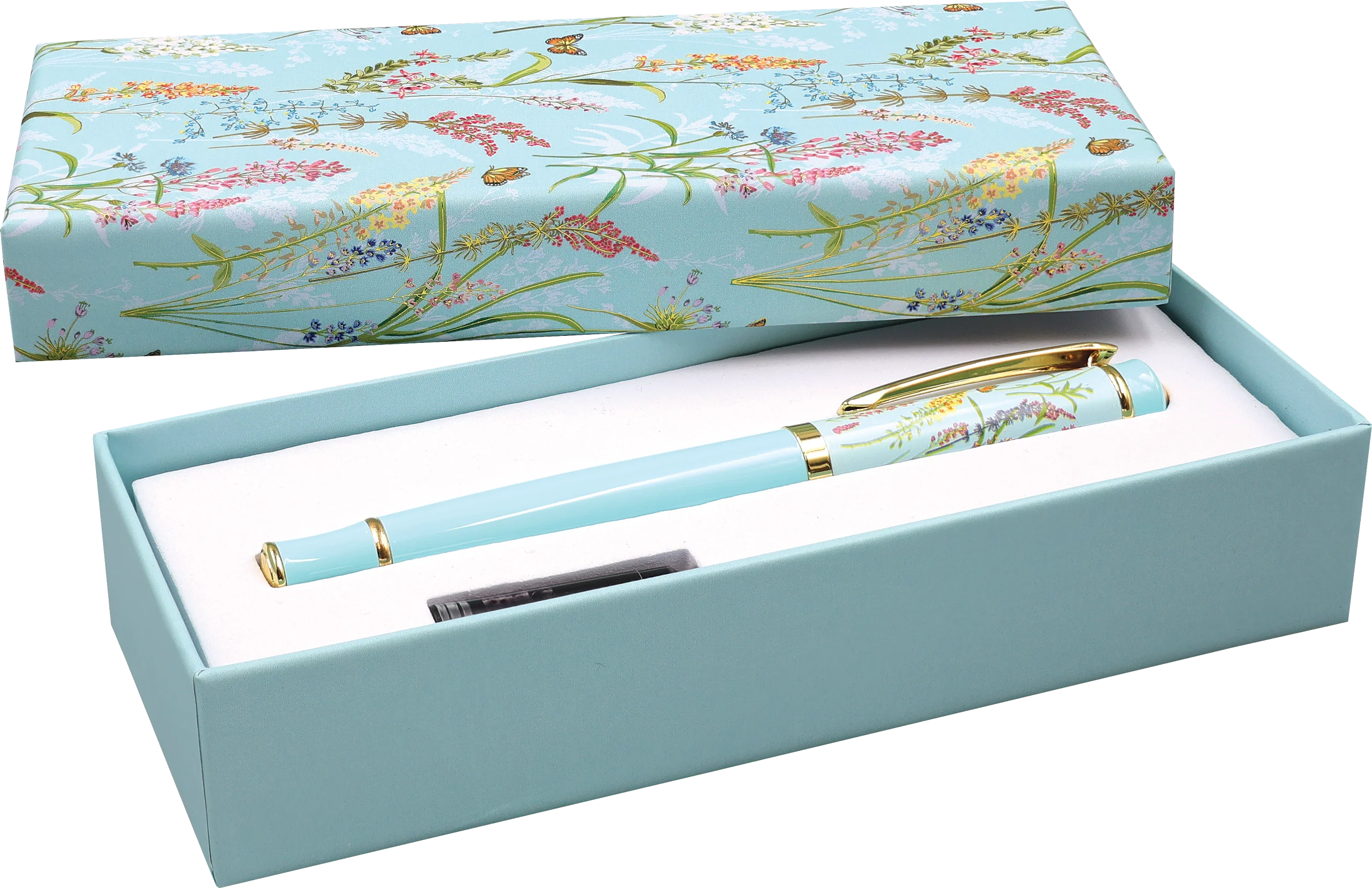 - Pen design features beautiful butterflies and vibrant botanicals.