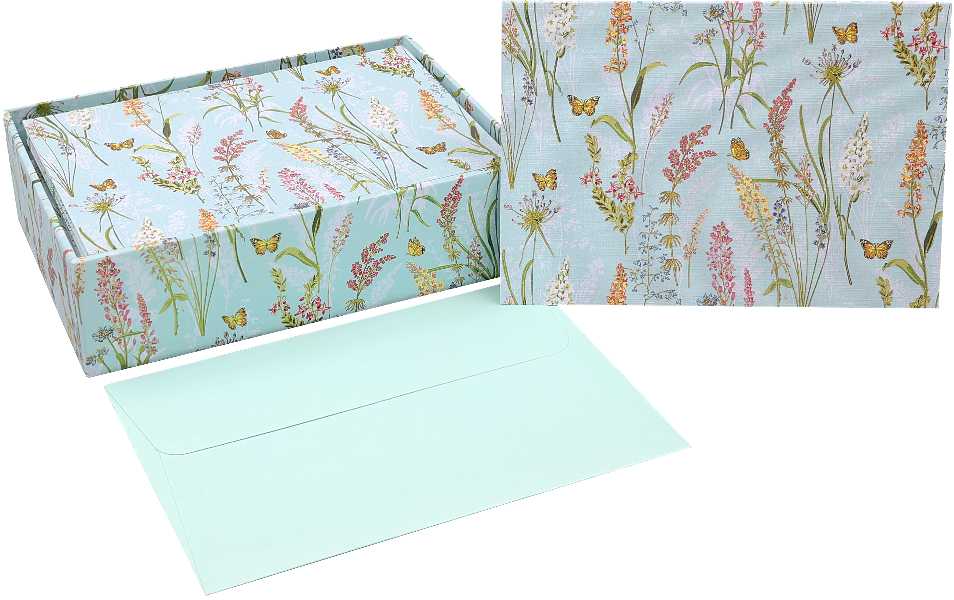 Beautiful butterflies and vibrant botanicals grace these delightful note cards!