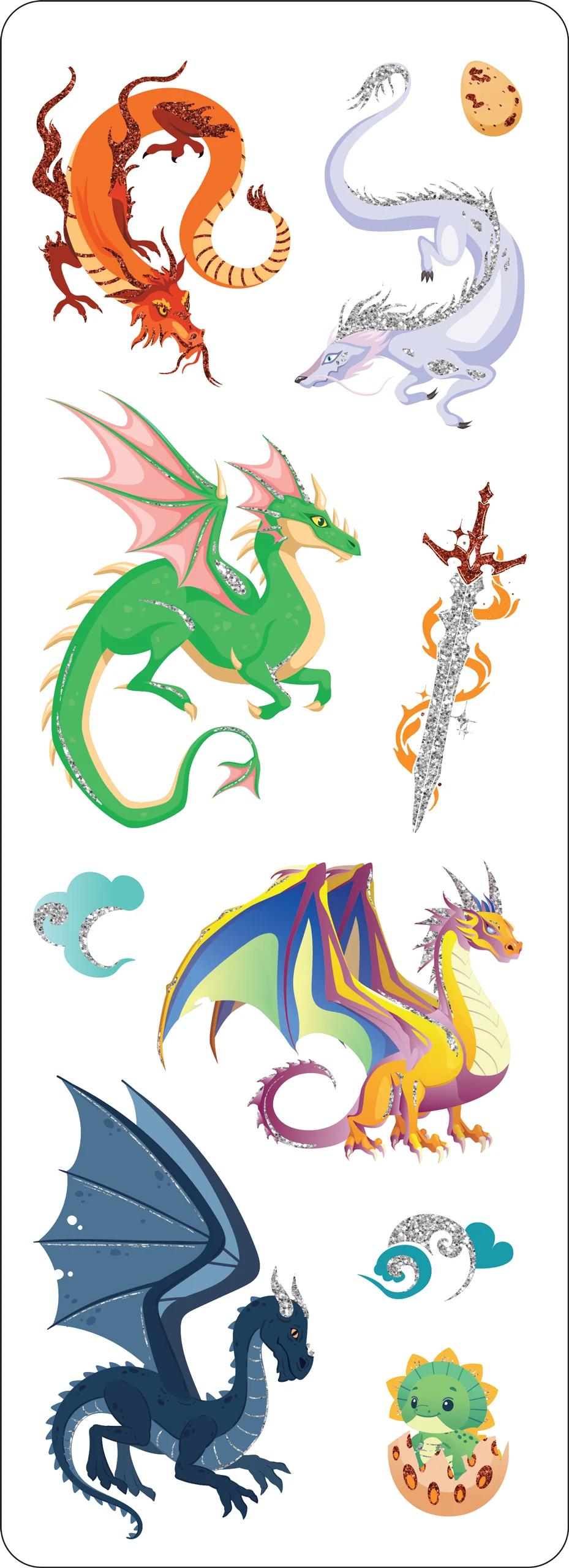 - Dragon fanciers will find more than 70 stickers on 6 different sheets!