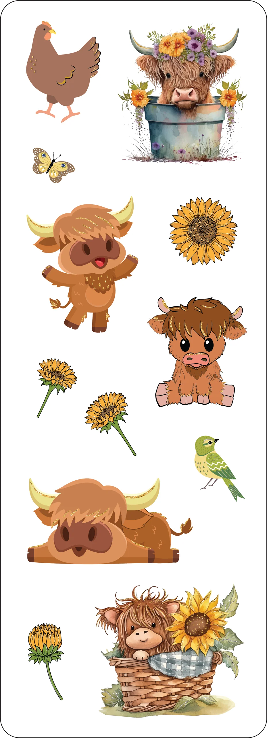 Let this sweet set of highland cow stickers graze their way into your heart!