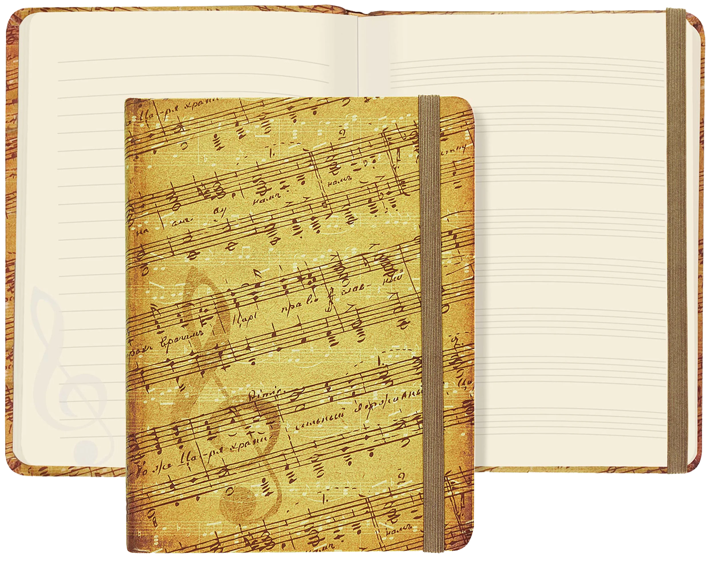 Journal comes with lined left-hand pages for ideas and lyrics, and staffed right-hand pages for composing music.