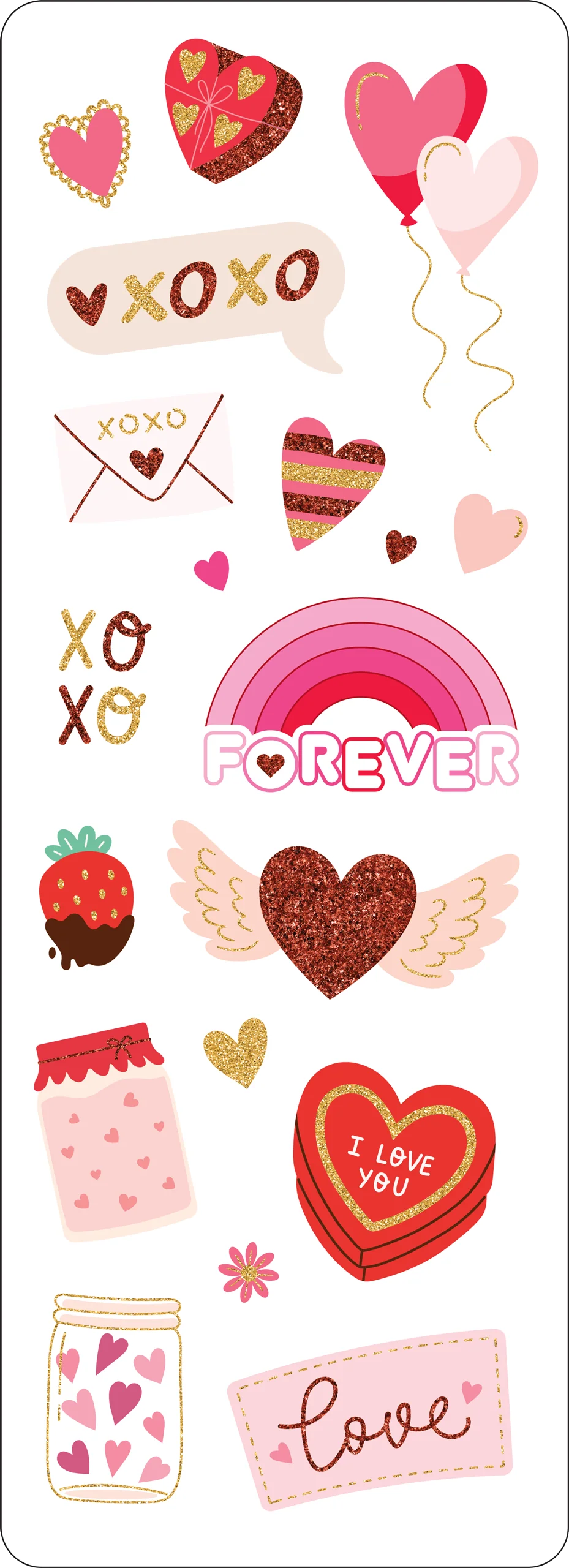 - Stickers include candy, hearts, and flowers; a bee, a bear, and a Cupid bunny; phrases like ''Be mine,'' ''XOXO,'' and ''Forever;'' plus adorable accents!