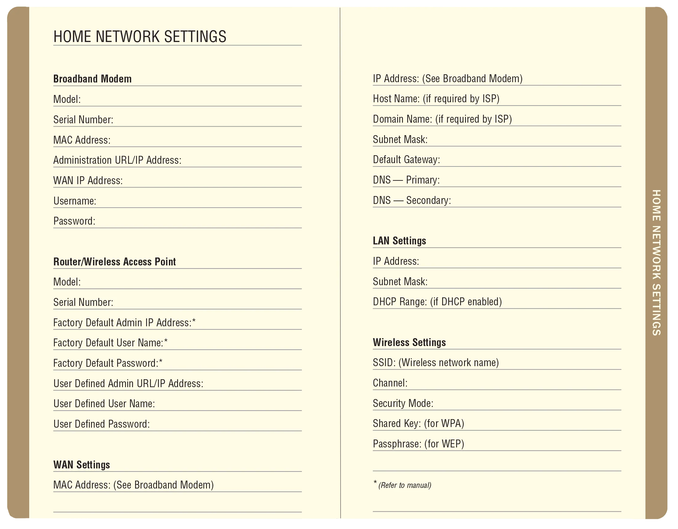 You can also make notes about home network configurations, software license numbers, etc., in pages in the back of the book.